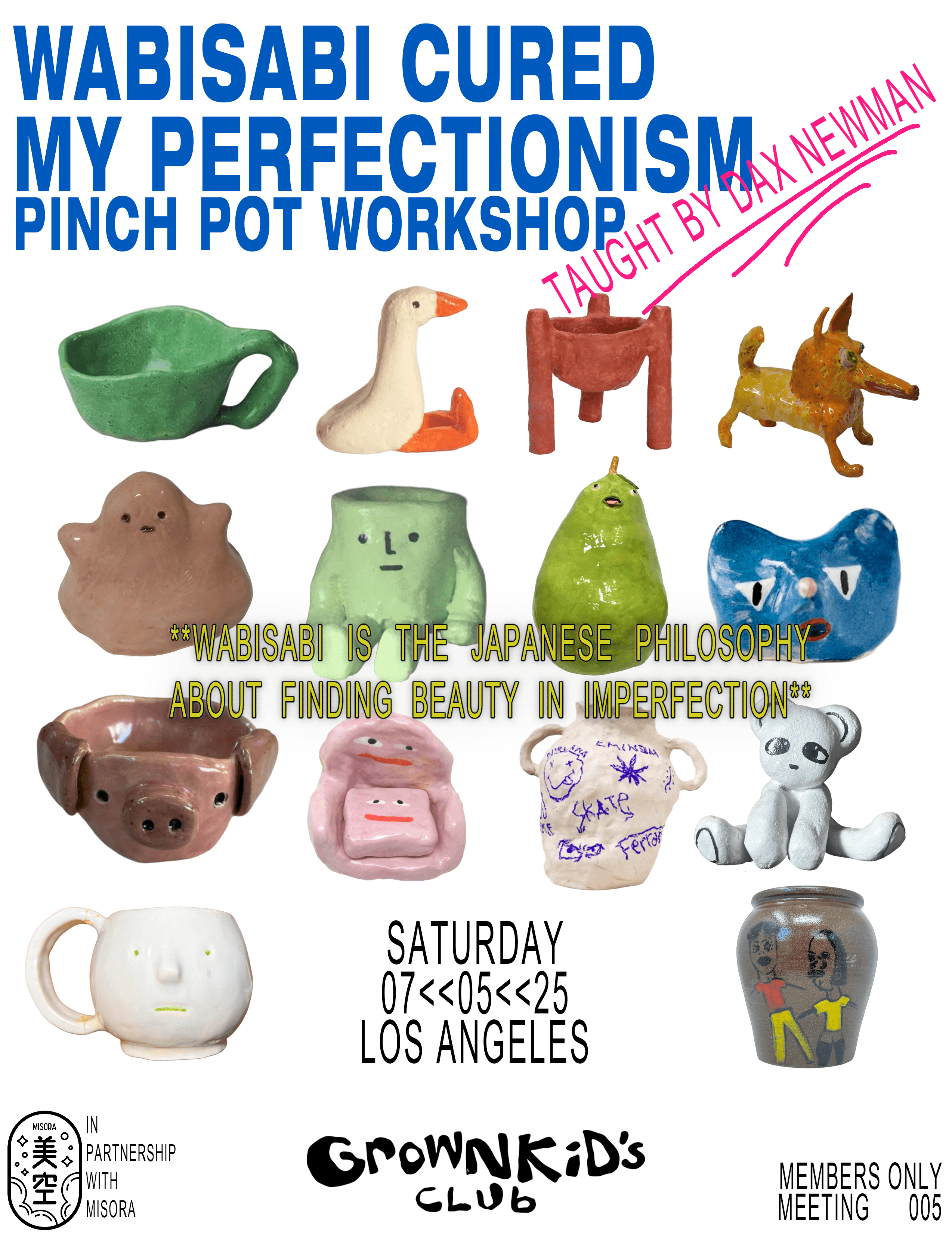 lots of partying requires lots of art the morning after to calm the body and mind. this week, we're hosting a ceramics workshop based on the japanese philosophy of wabi-sabi, aka: embracing imperfection.