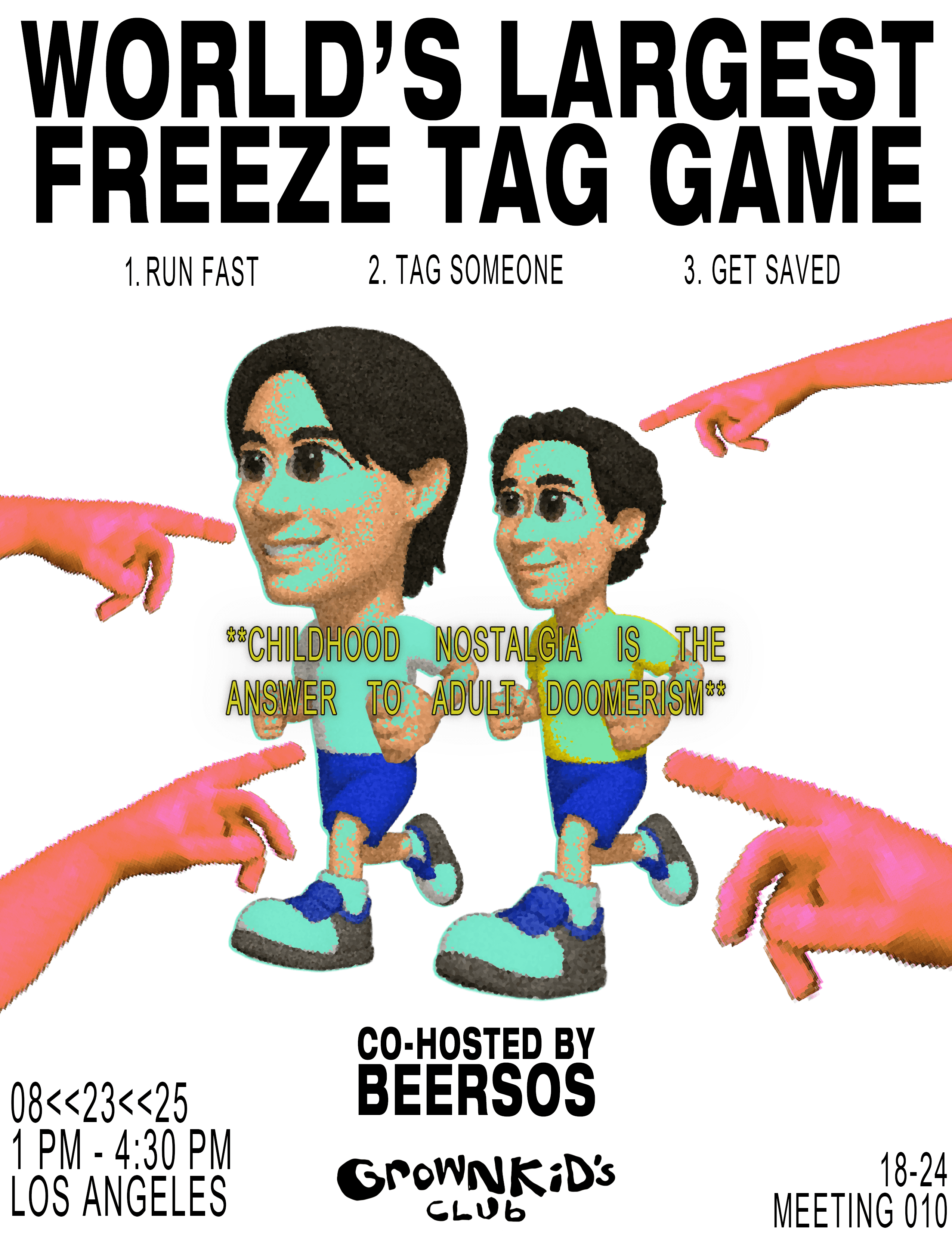 we realized the antidote to adult doomerism might just be childhood nostalgia. we’re all overwhelmed, overstimulated, and chronically online, that we forget what fun used to feel like. it reminds us of PE games, sprinting across a field, screaming with your friends, and how during it all, we would feel so light and full of energy. so, we brought back freeze tag to give everyone the chance to RUN again.